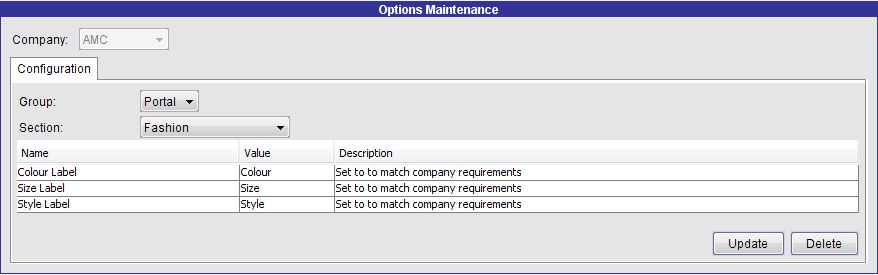 Company Options are configured on a per-Group basis. Select the Group to configure from the drop-down list. Because there are so many options to configure, the Company Options Maintenance screen is broken down into Sections. The Sections that can be selected from the drop-down list are: